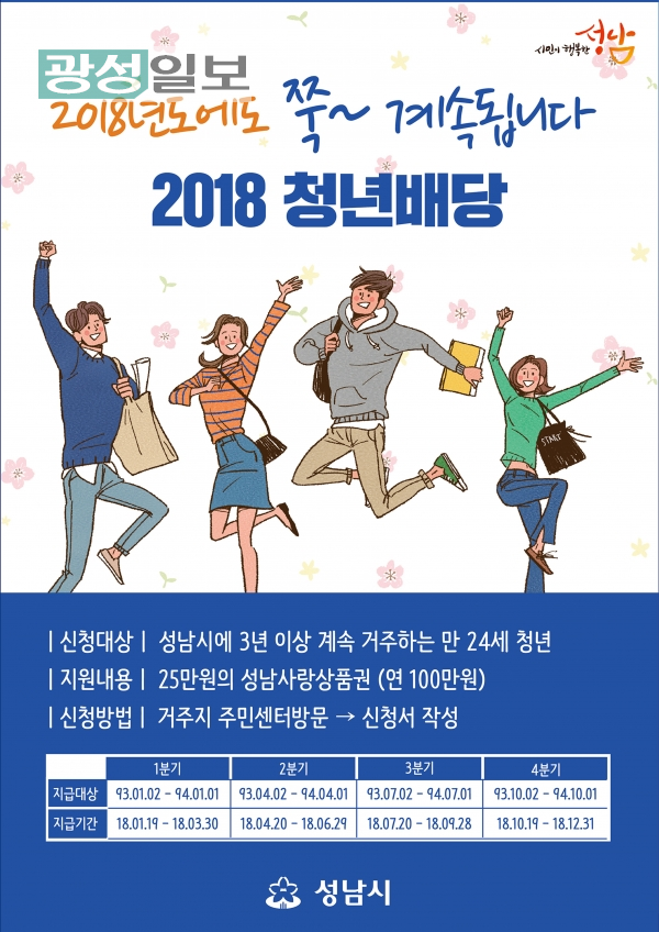 성남시는 오는 4월 20일부터 6월 29일까지 올해 2분기 청년배당을 지급한다.3년 이상 성남시에 거주한 만 24세 청년 1만773명이 이번 분기 지급 대상이다.