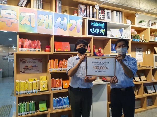 수정도서관 직원 일동은 건축물 관리법이 변경돼 공부방 운영에 힘들어하는 ‘성남우리공부방지역아동센터’에 해피빈(콩) 50만원을 기부했다.