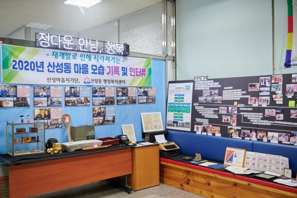 산성마을지기단 단장 이영성은 “많은 사람의 삶과 사연이 담긴 동네이자 우리의 아늑한 보금자리였던 동네가 재개발로 인해 변화되는 아쉬운 마음을 사진에 담아 보았다. 이웃에게 이 전시회가 아름다운 추억 여행이 되기를 바라며 애써주신 모든 분께 감사드린다.”라고 하며 감사의 인사를 전했다.