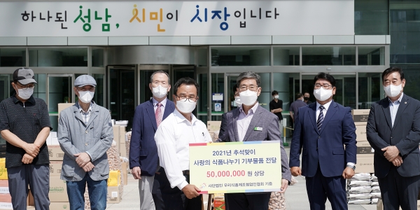 성남지역 식품 취급 업체 20개사가 지속되는 코로나19에도 5000만원 상당의 먹거리를 기부해 어려운 이웃과 훈훈한 정을 나눴다.