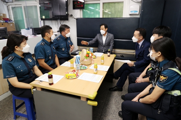 추석을 앞두고 ‘장애인 활동가 정담회(15일)’, ‘심리방역 종사자 방문(16일)’, ‘전통시장·대형마트 추석물가 점검(16일)’에 이어 3일 연속 이뤄진 이번 명절 위문은 연휴에도 현장을 지켜야 하는 근무자에게 감사를 전하고자 하는 장현국 의장의 의지에 따라 추진됐다.