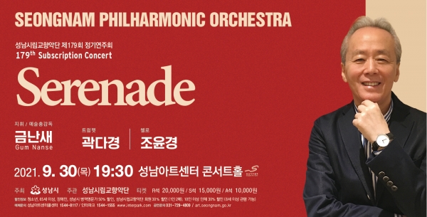 성남시립교향악단의 제 179회 정기연주회가 오는 9월 30일 오후 7시 30분 성남아트센터 콘서트홀에서 개최된다.