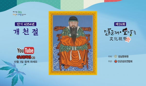 성남문화원(원장/김대진)은 단기 4354년 개천절 ‘제26회 도당굿 문화축제’를, 코로나19 방역수칙을 준수하여 사전녹화해서 오는 10월 3일 성남문화원 유튜브 채널을 통해 온라인 송출한다.