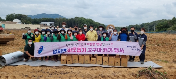 새마을부녀회와 지역사회보장협의체가 어려운 이웃을 돕는 사랑의 고구마 수확 행사를 했다고 밝혔다.
