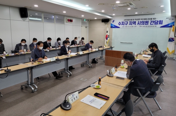 용인시 수지구는 지난 19일 구청 영상정보실에서 2022년도 본예산 편성에 앞서 지역 현안 논의를 위해 지역 시의원들과 간담회를 가졌다고 20일 밝혔다.