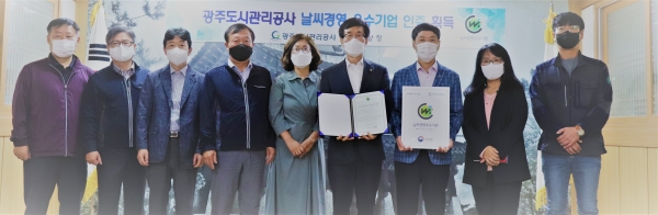 광주도시관리공사(사장 유승하)는 15일 기상청과 한국기상산업기술원이 주관하는 2021년 날씨경영 우수기관에 광주시 최초 선정되는 쾌거를 이루었다.