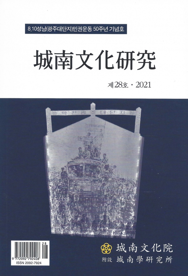 금번 28호에는 윤종준 성남문화원 (부설)성남학연구소 상임연구위원이 ‘인간 존엄과 행복을 추구할 권리’와 ‘광주대단지 사건 전개과정’ 자료와 헌시 ‘성남이여, 행복의 땅이여!’, 최명숙 연구위원(문학박사)이 ‘이문열의『변경』에 나타난 광주대단지 사건 연구’를 통해 문학 작품 속 등장인물의 광주대단지 인식양상을 구체적으로 분류하며 살폈다.
