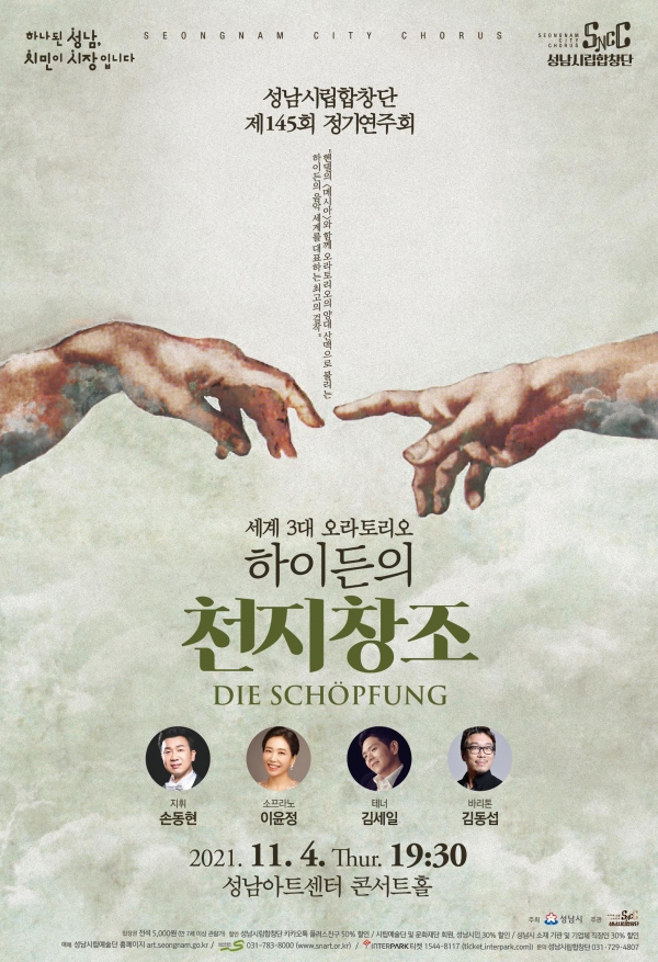 성남시립합창단은 오는 11월 4일 오후 7시 30분 성남아트센터 콘서트홀에서 145회 정기연주회로 하이든의 ‘천지창조’를 개최한다.하이든의 ‘천지창조’는 낙관주의와 젊음의 활력을 잘 보여주는 걸작이다.