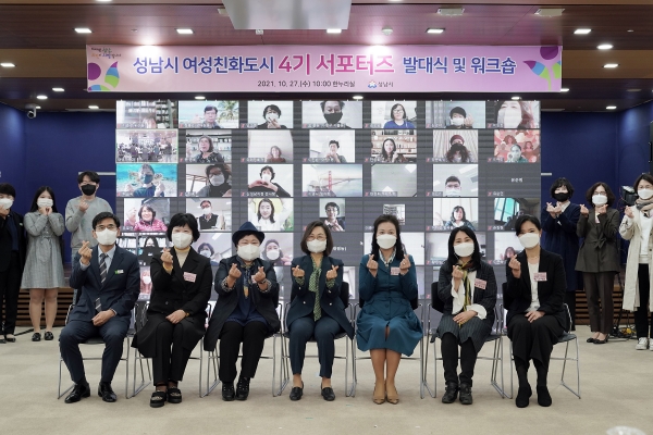 성남시(시장 은수미)는 여성친화도시 4기 서포터즈단 100명을 결성해 10월 27일 본격 활동을 시작했다.시는 이날 오전 10시 시청 한누리에서 여성친화도시 서포터즈 발대식과 역량 강화 워크숍을 진행했다.