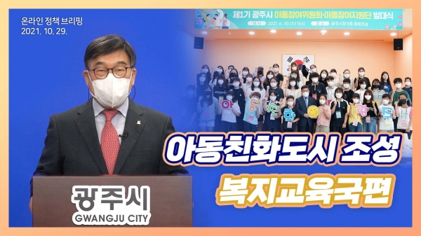 신동헌 광주시장은 29일 온라인 시정브리핑을 발표했다.이날 브리핑에서는 복지교육국의 역점사업인 ‘유니세프 아동친화도시’ 조성사업 추진 계획을 밝혔다.