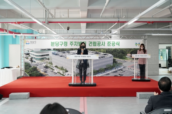 은수미 성남시장과 단체장 등이 참석한 가운데 ‘분당구청 주차빌딩 준공식’을 개최했다.