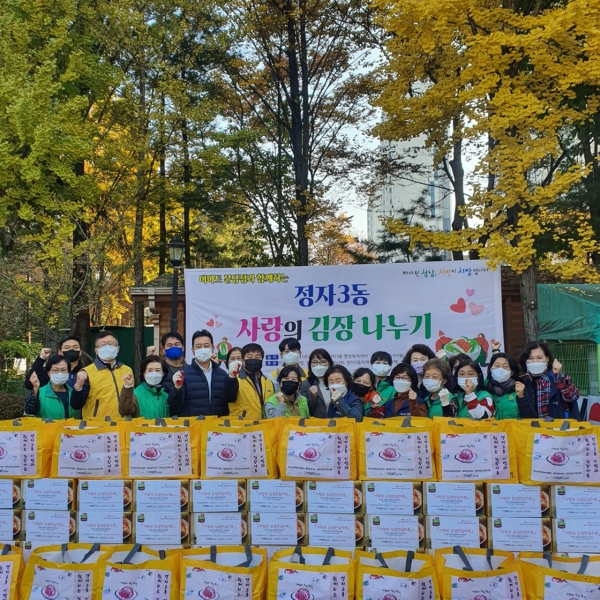 성남시 분당구 정자3동은 11월 3일 이마트 분당점과 함께 하는 ‘사랑의 김장나눔’ 행사를 개최했다.정자3동 지역사회보장협의체가 주관하고, 이마트 분당점과 새마을 부녀회의 후원한 이날 행사는 ‘사랑의 김장안심키트’를 제작하고, 취약계층 100가구에 전달하는 순으로 진행됐다.