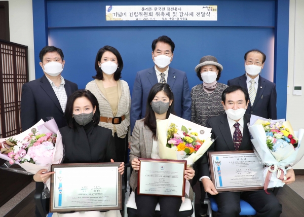 미국 캘리포니아주 오렌지카운티에 건립될 한국전참전용사 기념비 건립위원 위촉패와 감사패를 전달했다.