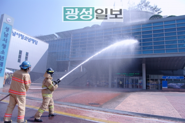 이날 훈련에는 성남소방서 및 하대원 119안전센터 소방차 및 구급차 10대, 소방대원 60명 등의 인원과 장비를 동원해 화재발생 시부터 진화, 인명 구조, 복구까지 수련관과 합동으로 인명 및 재산피해를 최소화하는 훈련을 실시한다