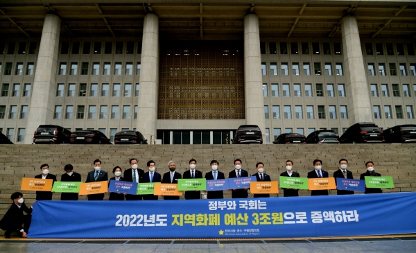 광주시(시장 신동헌)는 11월 9일 국회 소통관에서 열린 기자회견(전국시장군수구청장협의회 주관)에 참석하여 위드코로나 일상회복을 위한 예산편성과 내년 6차 전국민 상생지원금 지급을 국회에 촉구하고 나섰다.
