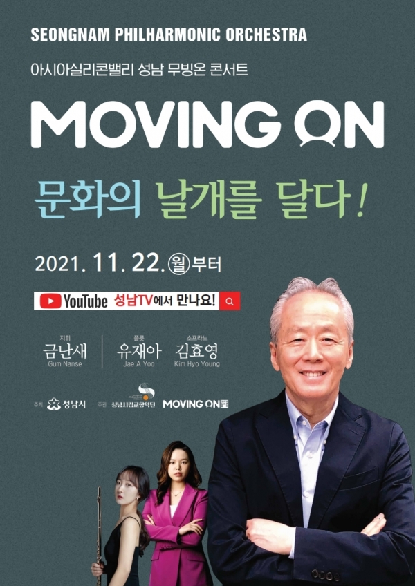 성남 무빙온 콘서트(부제: 무빙온 문화의 날개를 달다!)가 11월 22일부터 유튜브 ‘성남TV’를 통해 송출된다.