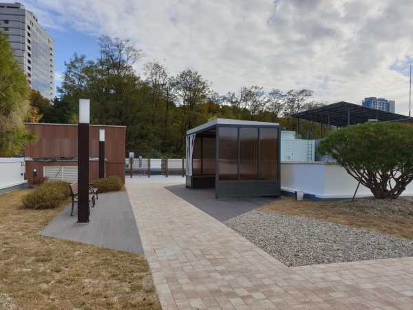 이번 공사는 어르신들의 보행 안전사고를 예방하고 쾌적한 복지환경을 제공하고자 국비 5억원 지원받아 진행됐다.옥상층에 누수 방지를 위한 방수공사를 실시하였으며, 퍼걸러 2개소, 등의자 등을 설치하고 수목을 식재해 도심 속에서도 상쾌하고 편안한 쉼터를 제공한다. 탄천으로 연결된 산책로 또한 정비해 어르신들의 보행 안전을 확보했다.