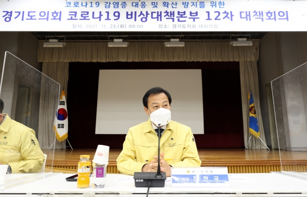 장현국 경기도의회 의장(더민주, 수원7)은 수도권 전면등교 2일 차인 23일 ‘코로나19 비상대책본부 12차 대책회의’를 긴급 개최해 ‘교내 확진자 발생 시 임시 선별진료소 설치’ 등 안정적 일상회복을 위한 구체적 방안을 논의했다.