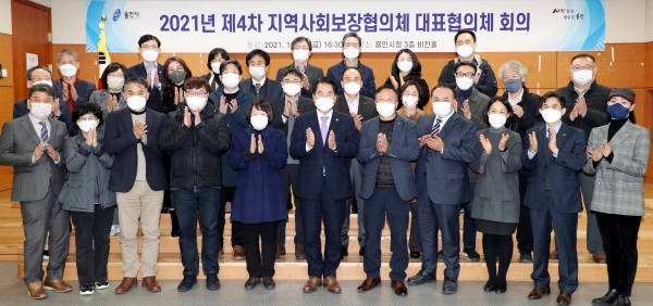 용인시는 26일 시청 비전홀에서 용인시지역사회보장협의체 제4차 대표협의체 회의를 열고 주요 안건을 논의했다고 밝혔다.회의에는 백군기 용인시장, 이창호 복지여성국장, 박영춘 처인구보건소장, 김진희 용인시지역사회보장협의체 민간위원장과 민간위원 등 31명이 참석했다.