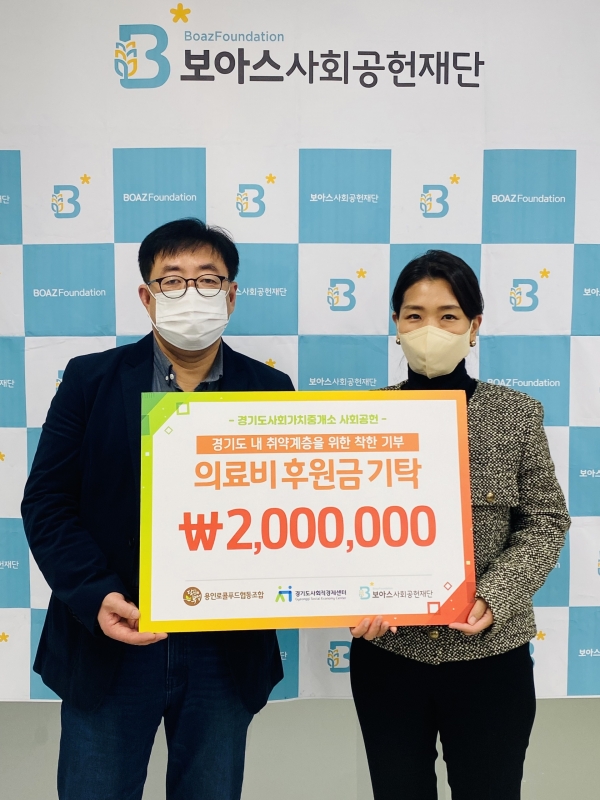㈜용인로컬푸드가 취약계층 병원비 지원을 위한 기부금 200만 원을 26일 전달했다.