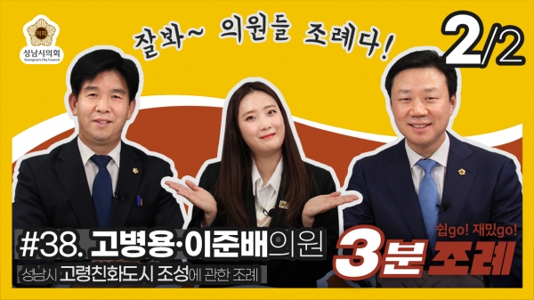 성남시의회(의장 윤창근)는 29일 ‘성남시의회 3분 조례’ 서른여덟 번째 영상을 SNS에 게시했다.이번에 게시된 영상은 지난주 게시되었던 고병용, 이준배 의원 등 30명이 공동발의한 ‘성남시 고령친화도시 조성에 관한 조례’의 두 번째 영상이다.