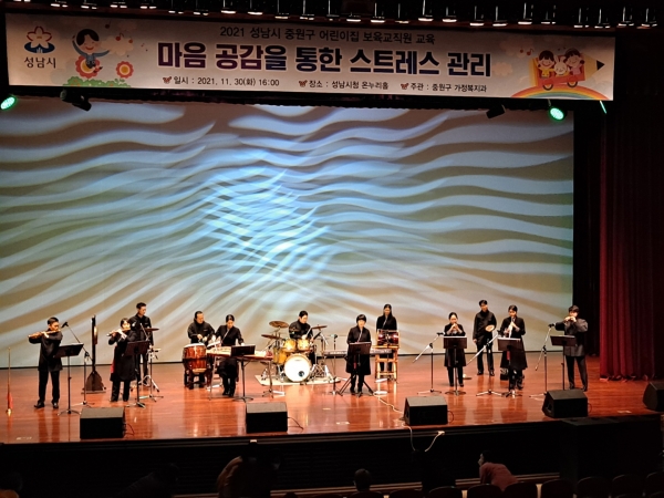 성남시립 국악단의 타악 퍼포먼스 ‘멋으로 사는 세상’을 관람하고, ‘아동학대 예방 교육’ 홍보 동영상을 시청하는 시간을 마련했다.