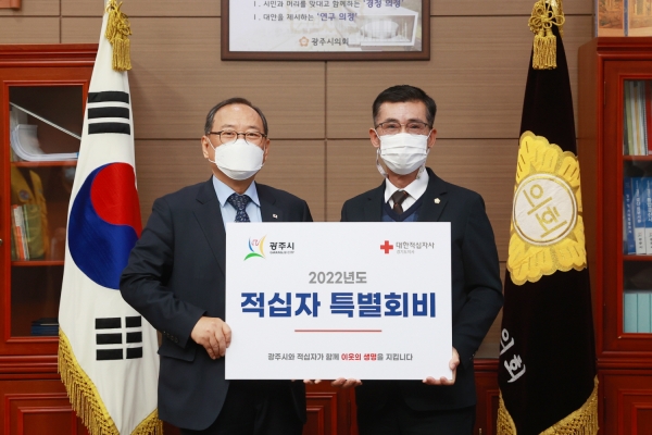 광주시의회 임일혁의장은 지난 6일 의장실에서 2022년 적십자 특별회비를 전달하며, 추운 겨울 따뜻한 나눔의 문화를 전파하는데 동참했다.