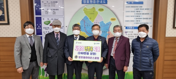 이천시 장호원라이온스클럽(회장 이시우)는 10일 장호원읍 행정복지센터에 취약계층 위해 난방유(240만원 상당)를 기탁하였다.
