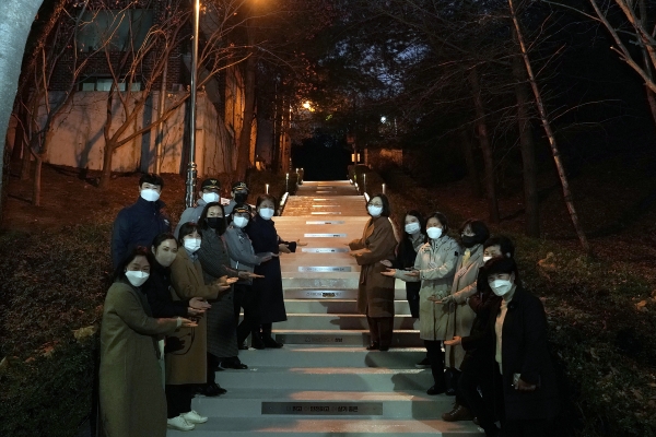 분당동 선지봉전원마을에 ‘별빛안심계단’을 조성하고 9일 여성친화도시 서포터즈(단장 문경은)와 함께 현장점검을 실시했다.