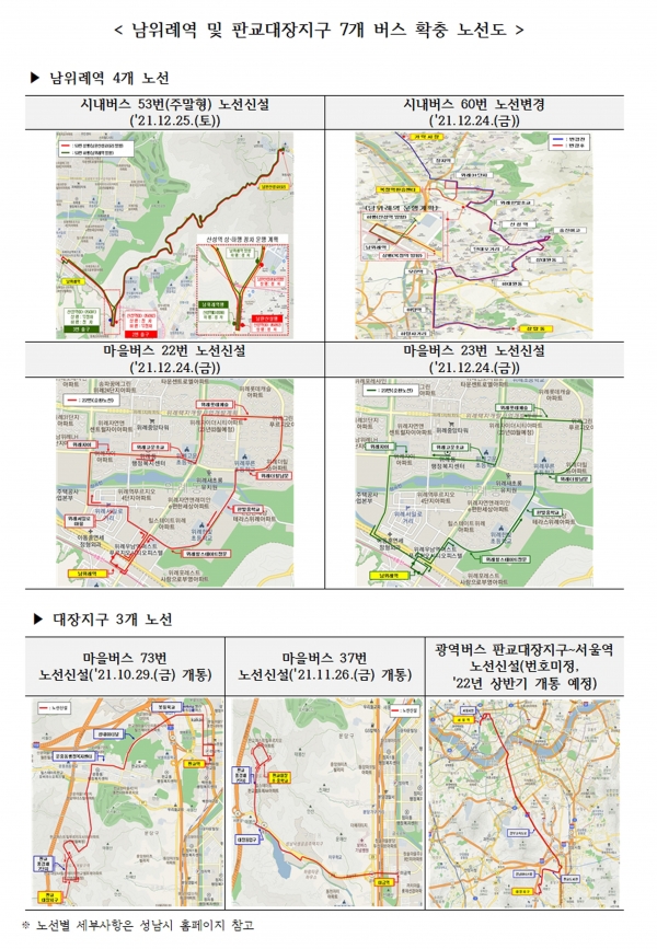 판교대장지구는 서울역 오가는 광역버스 포함 3개 노선 추가
