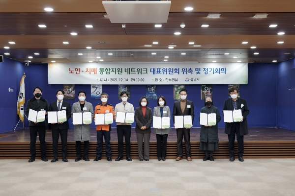 성남시는 행정·의료·복지·돌봄·문화·안전·보호 분야의 10개 기관·단체가 참여하는 노인·치매 통합지원 네트워크 대표위원회를 구성하고, 12월 14일 오전 10시 시청 한누리에서 대표위원 위촉식을 했다.