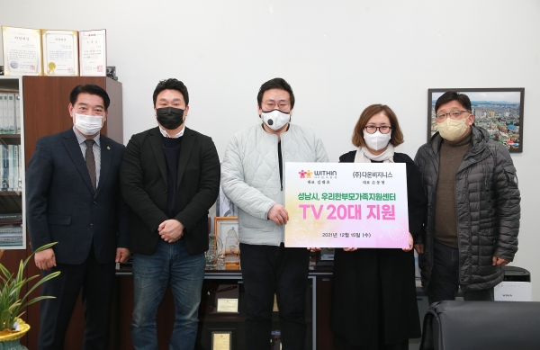 지난 15일 성남시의회 국민의힘 대표의원실에서 시티브TV(대표 손동현)와 사단법인 위드인사람과함께(대표 김대호), 우리한부모가족지원센터(이지우 센터장)와 국민의힘 이상호 대표의원, 안광림 시의원이 참석한 가운데 어려움을 겪는 한부모가정을 응원하고 따뜻한 연말을 보낼 수 있도록 TV 20대 전달식을 가졌다.