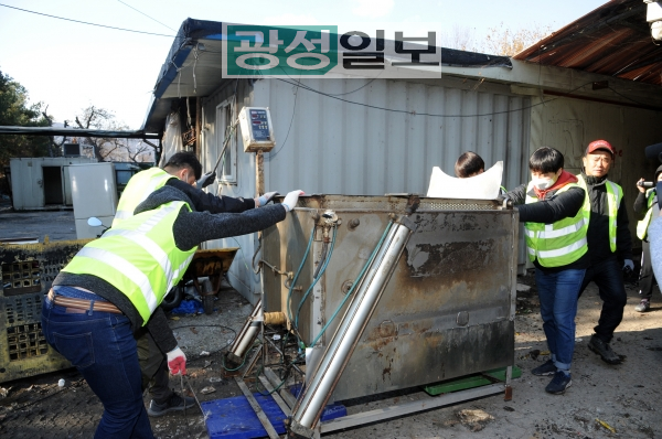 성남시는 22일 공원 조성 예정 부지인 수정구 태평동 7277번지 일원에 불법 설치돼 있는 개 도축시설을 강제 철거했다.