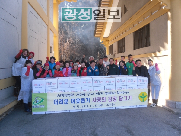 광주시 남한산성면 새마을지도자협의회‧부녀회(안수강 협의회장, 손명림 부녀회장)는 23일 관내 어려운 이웃을 위해‘사랑의 김장 담그기’를 개최했다.