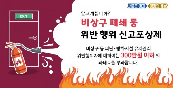 비상구 폐쇄 등 위반행위를 신고하면 포상금을 지급하는 신고포상제를 상시 운영하고 있다고 밝혔다.