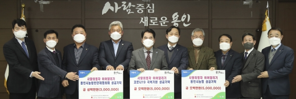 NH농협은행 용인시지부와 농협 10개 조합은 각각 500만원을, 용인시 농업인단체협의회는 성금 300만원을 기탁했다.박동준 지부장은 “코로나19로 더욱 힘든 겨울을 보내고 있을 이웃들에게 조금이나마 위로가 되길 바란다”며 “앞으로도 지역사회의 어려움을 함께 나눌 수 있는 농협이 되도록 노력하겠다”고 말했다.
