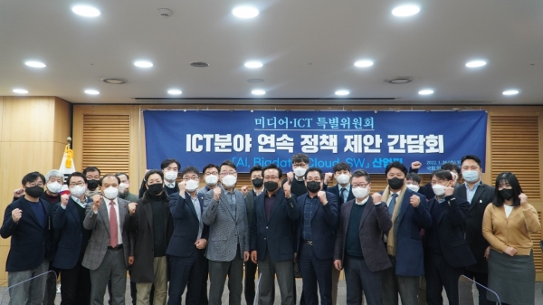 이번 정책 제안 간담회는 디지털 대전환에 가장 핵심이 되는 A.B.C(AI, Big data, Cloud) 분야 협단체들이 함께 하는 자리로, 한국SW·ICT총연합회 오태건 상근부회장, 한국소프트웨어산업협회 김동철 부회장, 한국인공지능협회 손장혁 이사, 한국데이터산업협회 김동한 사무국장, 한국클라우드산업협회 함재춘 사무국장 등이 참여했다.미디어‧ICT특별위원회는 먼저 5개 단체들의 주요 정책 제안 내용을 청취한 뒤 질의응답을 통해 협단체들과 쟁점이 되는 정책안에 대한 논의를 이어갔다.