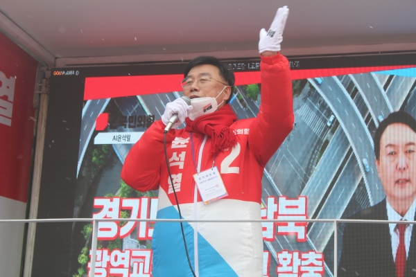 신상진 국민의힘 윤석열 후보 경기도선거대책위원회 공동 총괄선대위원장(국민의힘 성남시 중원구 당협위원장)은 15일 오후 1시 30분 분당구 야탑역 광장에서 열린 경기도당 대선 출정식에서 성남시를 살리는 길은 윤석열 후보를 당선시키는 것이라고 지지를 호소했다.