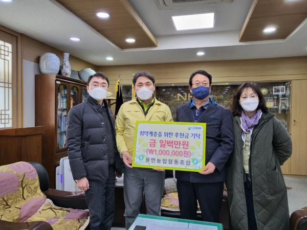 이천시 율면 농업협동조합(조합장 박병건)에서는 17일 율면 행정복지센터에 저소득 취약계층을 위해 사용해 달라며 행복한 동행 후원금 1백만 원을 기탁하였다.