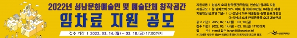 성남문화재단은 지난해에 이어 올해도 ‘문화예술인 및 단체 창작공간 임차료 지원’ 공모를 진행한다.
