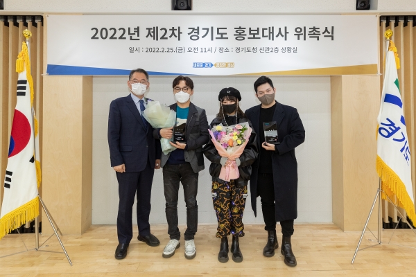 경연프로그램 준결승 진출자 가수 이성국, 경기콘텐츠진흥원의 인디뮤지션 오디션 준우승팀 일렉트로닉 팝 듀오 우자앤쉐인이 25일 경기도의 새로운 홍보대사로 위촉됐다.