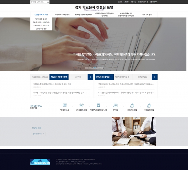 경기도교육청(교육감 이재정)은 3월부터 경기 학교용지 컨설팅 포털을 정식 운영한다고 밝혔다.학교용지 컨설팅 포털은 학교용지 조성·매입 업무를 체계적으로 지원하기 위해 도입한 것으로 학교용지 업무와 관련한 온라인 지원 포털 운영은 전국 시도교육청 가운데 최초 사례다.