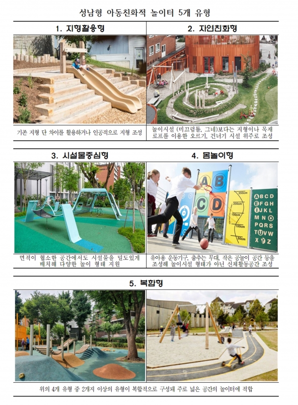 1곳 추가 공모…성남형 아동 친화적 놀이터 5개 유형 제시