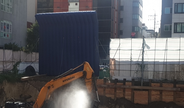 에어방음벽은 공기를 주입하여 설치하는 임시 방음벽으로 공사장 외부에 설치하여 소음을 저감하는 용도이며, 방음커튼은 건축물 내부 등 공간이 협소한 곳에 설치하는 용도이다.에어방음벽 및 방음커튼은 간단하게 설치와 해체가 가능해 공사장 내 소음원의 위치가 변동되는 경우 신속히 대처할 수 있다.