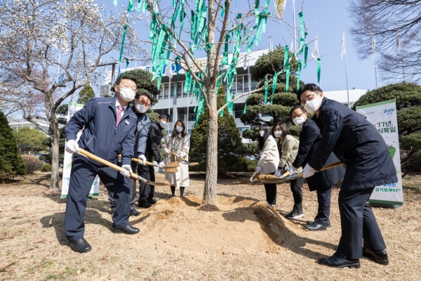 경기도가 반세기 넘는 팔달산 청사 시대가 마무리되는 가운데, 경기도가 29일 오전 오병권 경기도지사 권한대행 주재로 경기도청 신관 앞 정원에서 ‘제77회 식목일 기념 나무 심기 행사’를 개최했다.