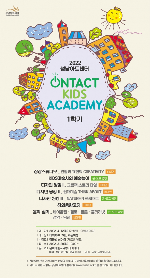 성남문화재단은 코로나19 속에서도 시민들의 문화예술 향유 공백 최소화를 위해 노력해 온 성남아트센터 아카데미가 2022년 어린이 정규강좌 수강생을 모집한다.