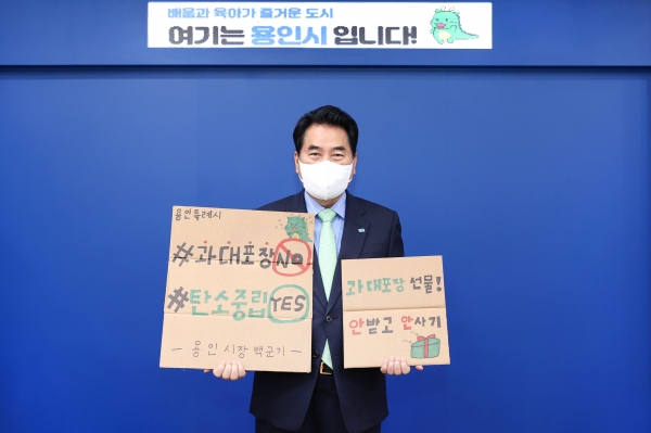 백군기 용인시장이 28일 과대포장으로 인한 쓰레기를 줄이기 위한 '과대포장 선물, 안 받고 안 사기' 챌린지에 동참했다.