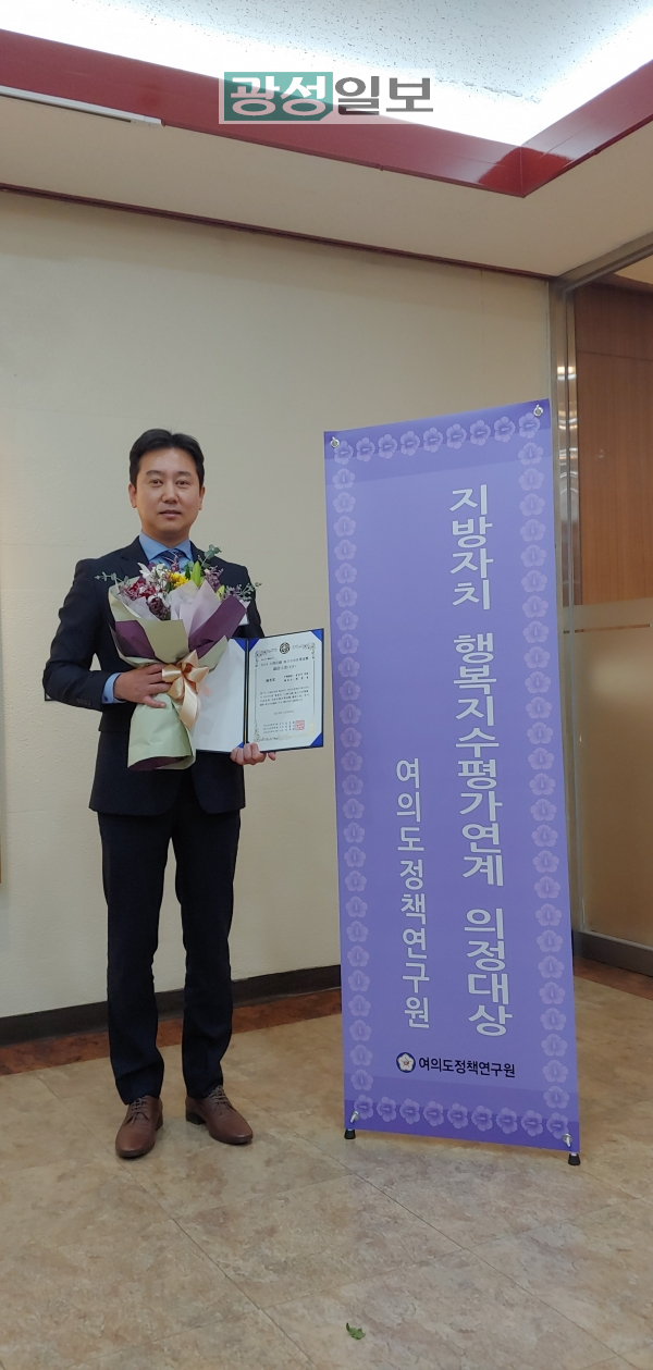 여의도정책연구원이 주관한 「대한민국 지방자치평가 의정대상」은 행복지수 산정자료와 지방의회 의원들의 조례입안 및 지역정책 기여도 등을 종합적으로 심사해 우수의원에게 수여하는 상이다.