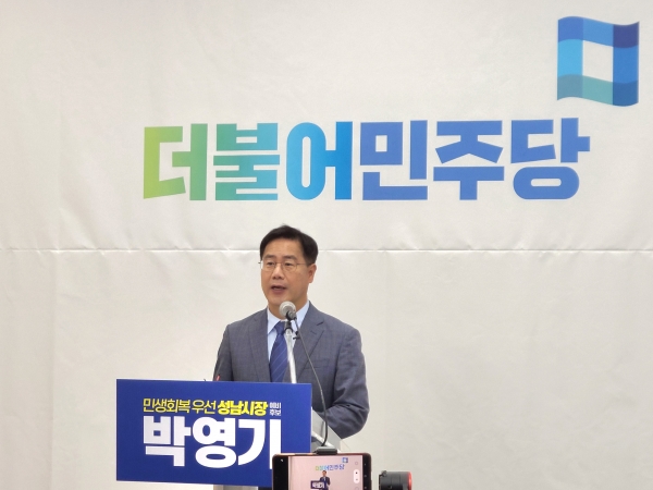 박영기 더불어민주당 정책위원회 부의장이 2022. 3. 30.(수) 성남시의회에서 기자회견을 통해 성남시장 출마를 선언했다.박영기 예비후보는 코로나 위기 상황에서 성남시가 정쟁의 대상이 되어 민생회복이나 코로나 위기 극복을 위한 긴급 현안 사업이 지연되거나 중단되어서는 안되며, 민생회복을 위한 청렴함과 유능함을 갖춘 성남시장의 적임자가 자신임을 강조했다.