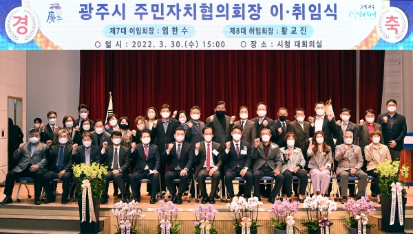 광주시 주민자치협의회는 30일 시청 대회의실에서 제7·8대 광주시 주민자치협의회장 이·취임식을 개최했다.